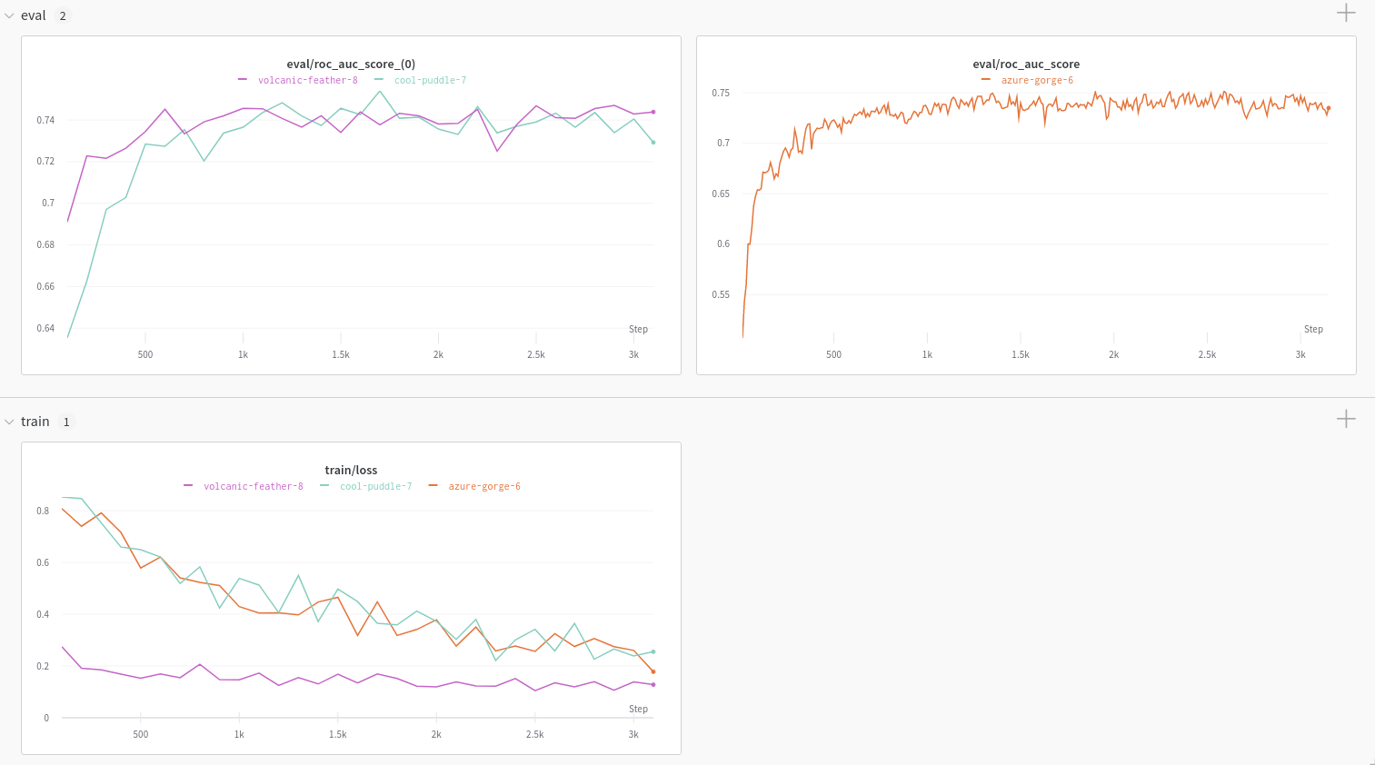 トレーニング損失と評価メトリクスは、W&Bに自動的に記録されます。オプションの評価は、DeepChem の ValidationCallback を使用して有効化できます。WandbLogger